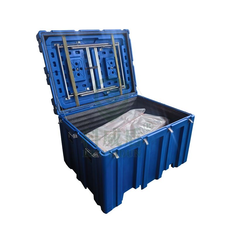 箱體結(jié)構(gòu):運輸箱為上開蓋結(jié)構(gòu),箱體部分采用滾塑工藝一次成型,箱體裝有鎖扣、合頁等金屬配件,金屬配件均為304不銹鋼材質(zhì)。